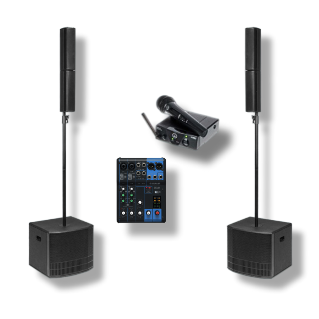 L’option idéale pour une soirée jusqu’à 120 personnes. Avec deux enceintes ES503, une mini table de mixage et un micro sans fil.