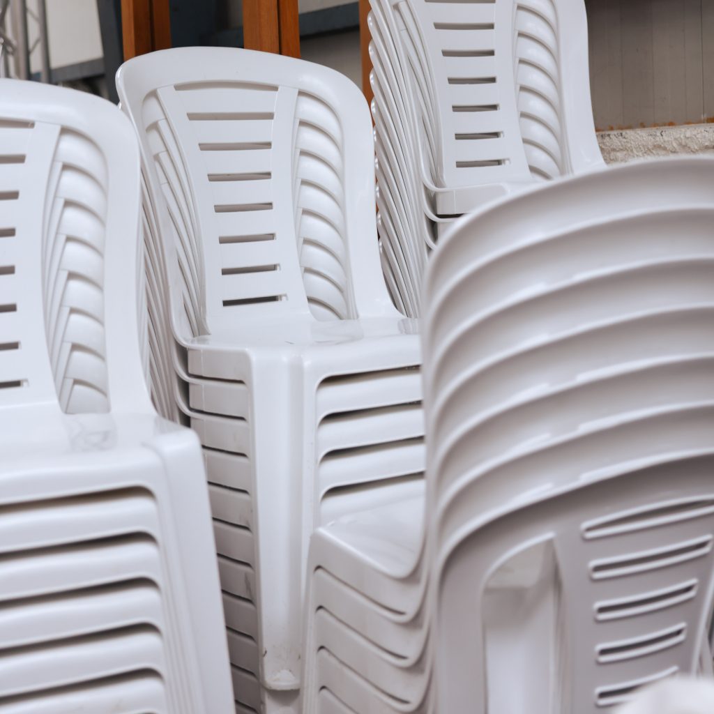 Chaises en plastique légères type Miami, faciles à installer et empilables, idéales pour tous types d’événements.