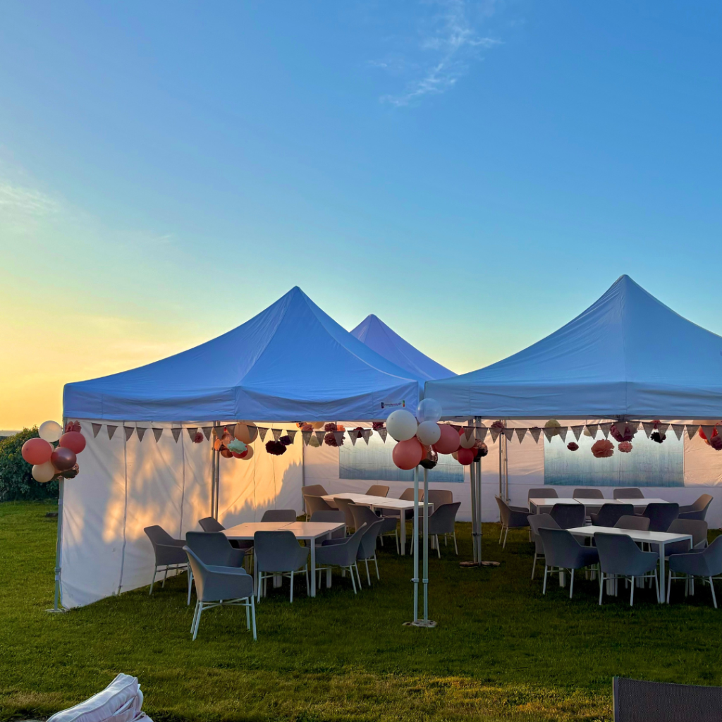 Dimension individuelle de 4×4 m, pouvant accueillir 15 personnes assises. Les structures peuvent être assemblées pour atteindre une dimension de 4×16 m.