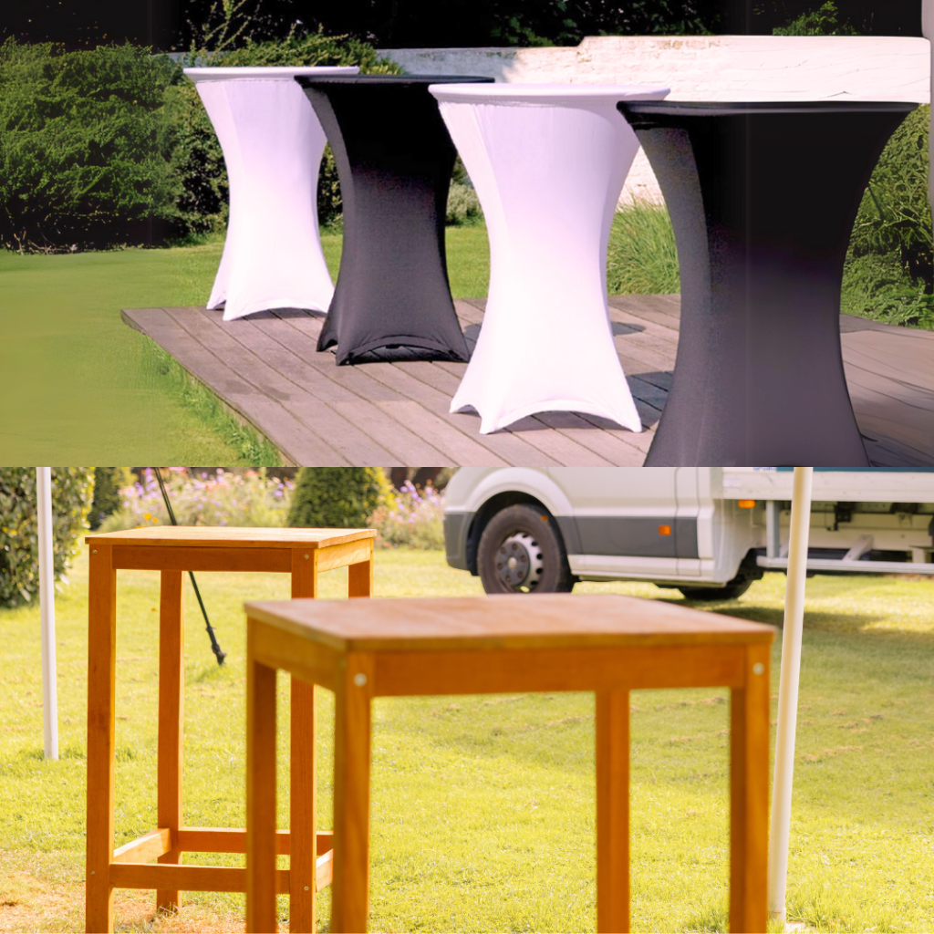 Optez pour nos mange-debout pliables avec revêtement blanc ou noir, ou choisissez la version en bois pour un effet chic et naturel
